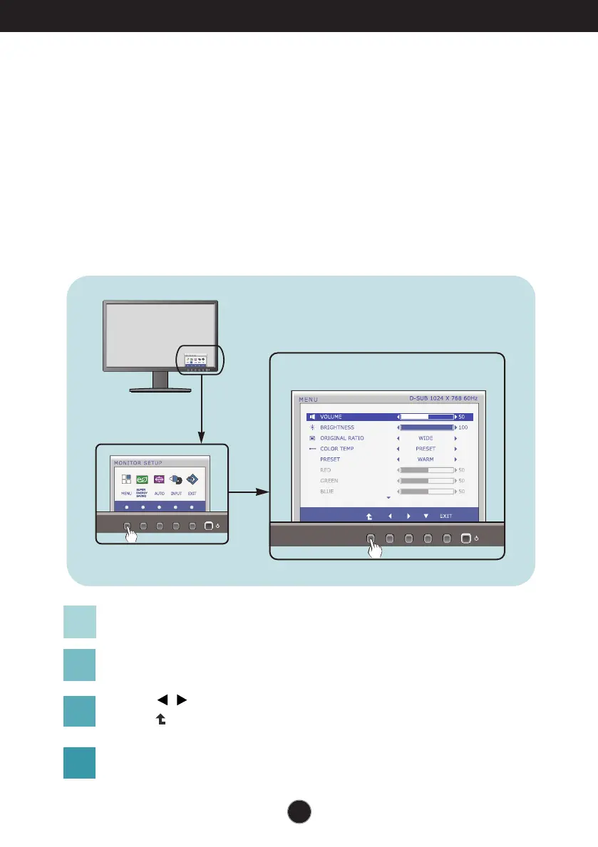 To make adjustments in the On Screen Display, follow these steps: