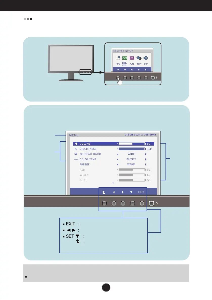 OSD (On Screen Display) menu languages on the monitor may differ from the manual.