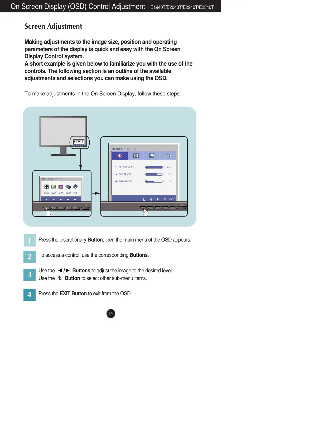 On Screen Display (OSD) Control Adjustment E1940T/E2040T/E2240T/E2340T