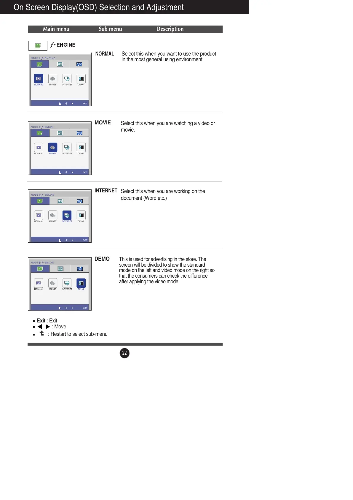 On Screen Display(OSD) Selection and Adjustment