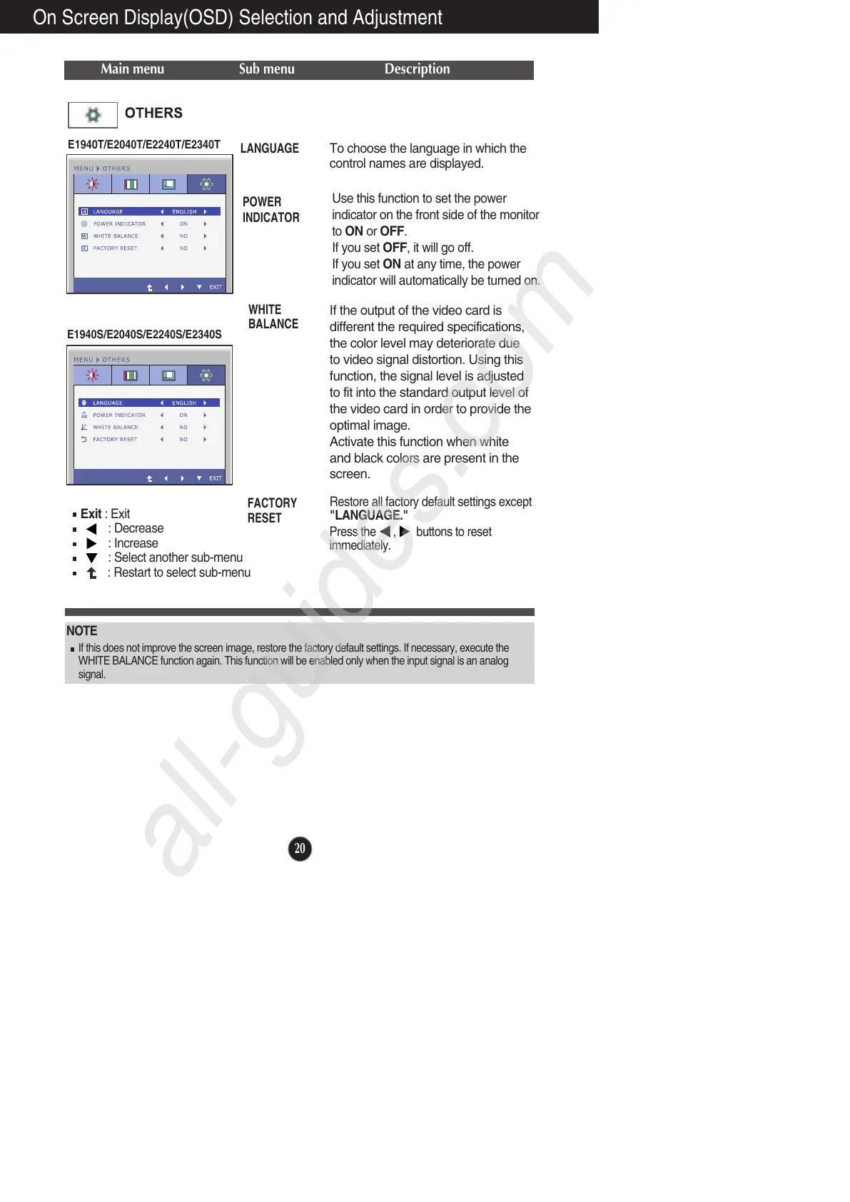 WHITE BALANCE function again. This function will be enabled only when the input signal is an analog