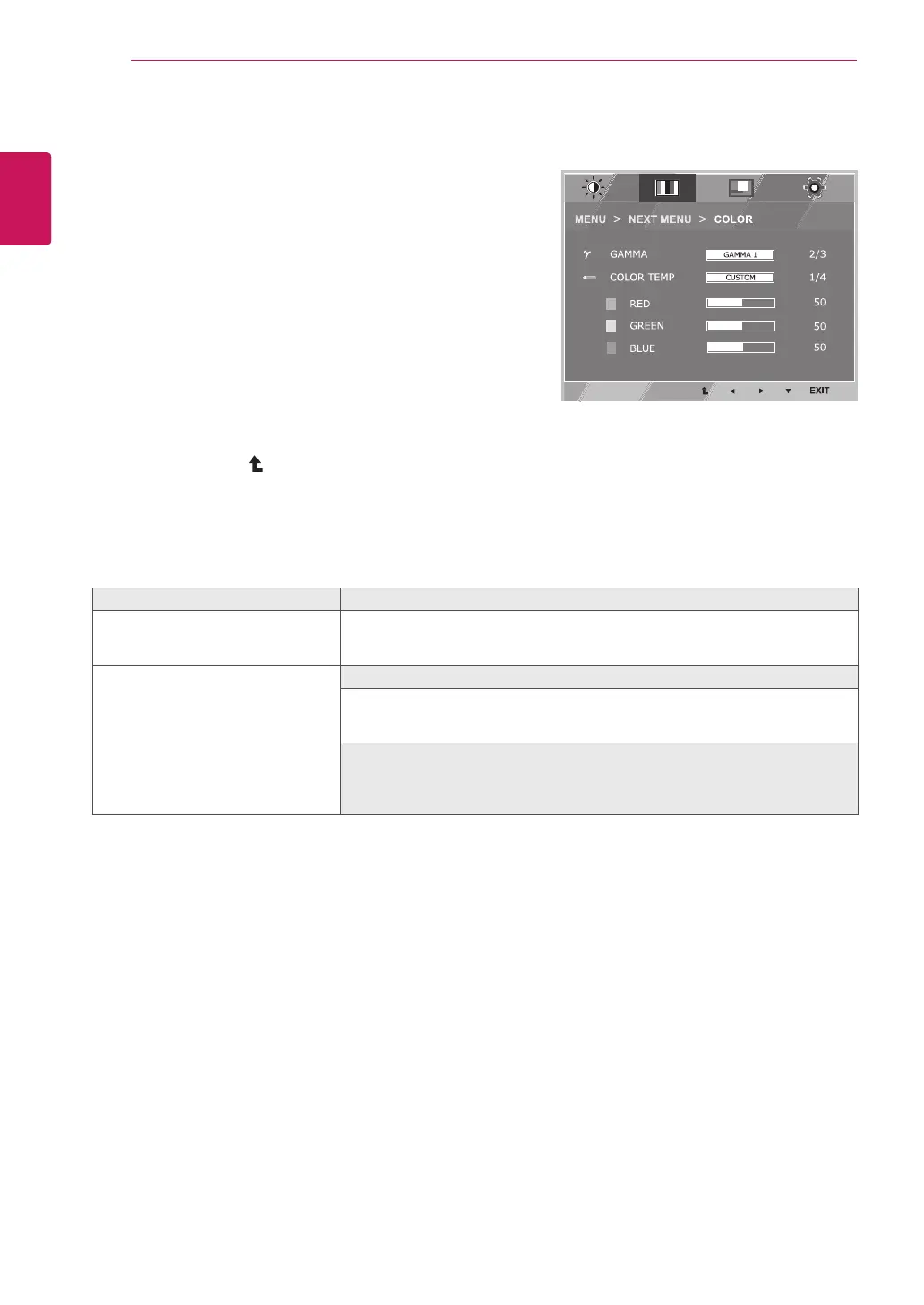 GAMMA Set your own gamma value. : GAMMA 0, GAMMA 1, GAMMA 2 on the monitor,