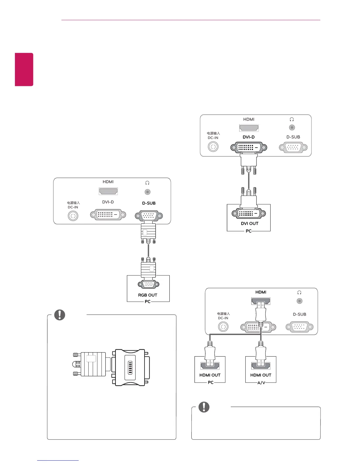 LG E2242V - Connecting to a PC; D-SUB Connection; DVI-D Connection; HDMI Connection