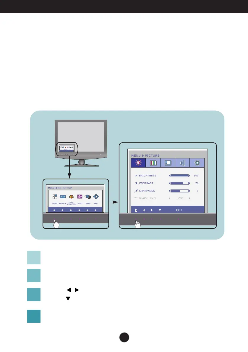 To make adjustments in the On Screen Display, follow these steps: