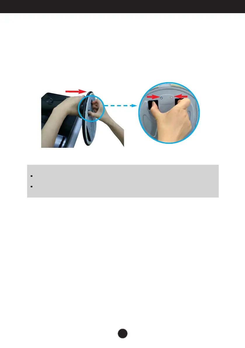 2. While pressing the latches, push the stand base in the direction of the arrow to separate