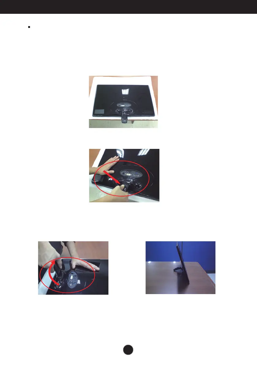 3. After pull the stand body up,take the monitor up carefully and face the front side.