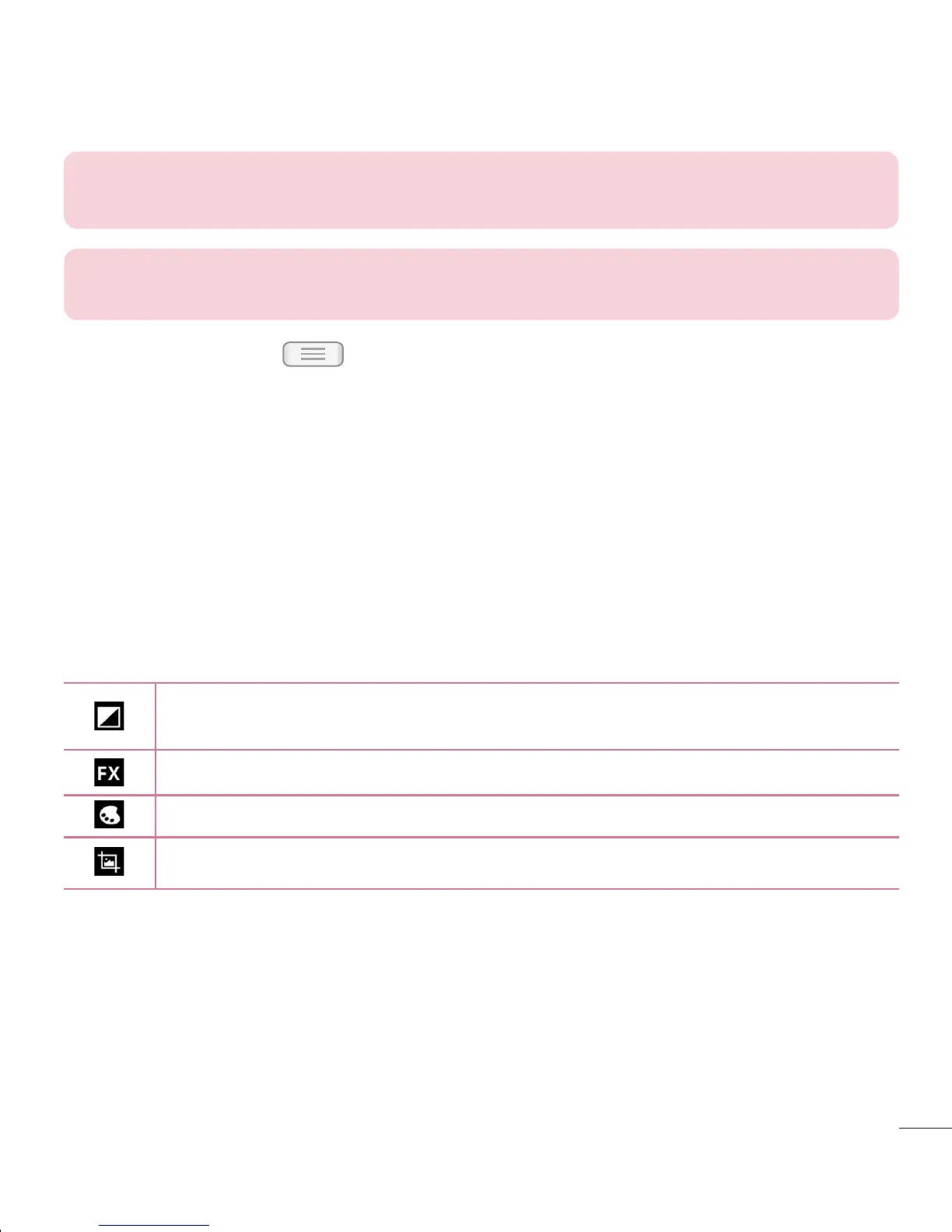 Crop – Crop your photo. Move your finger across the screen to select the area to be