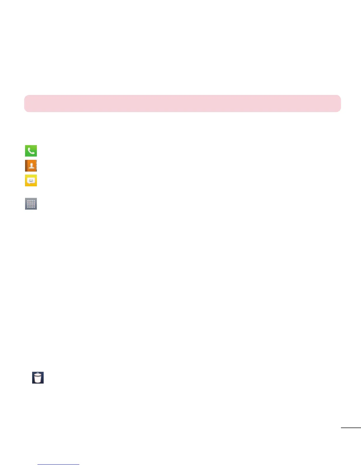 Sur votre écran d'accueil, des icônes de menu sont affichées en bas de l'écran. Les icônes de menu vous