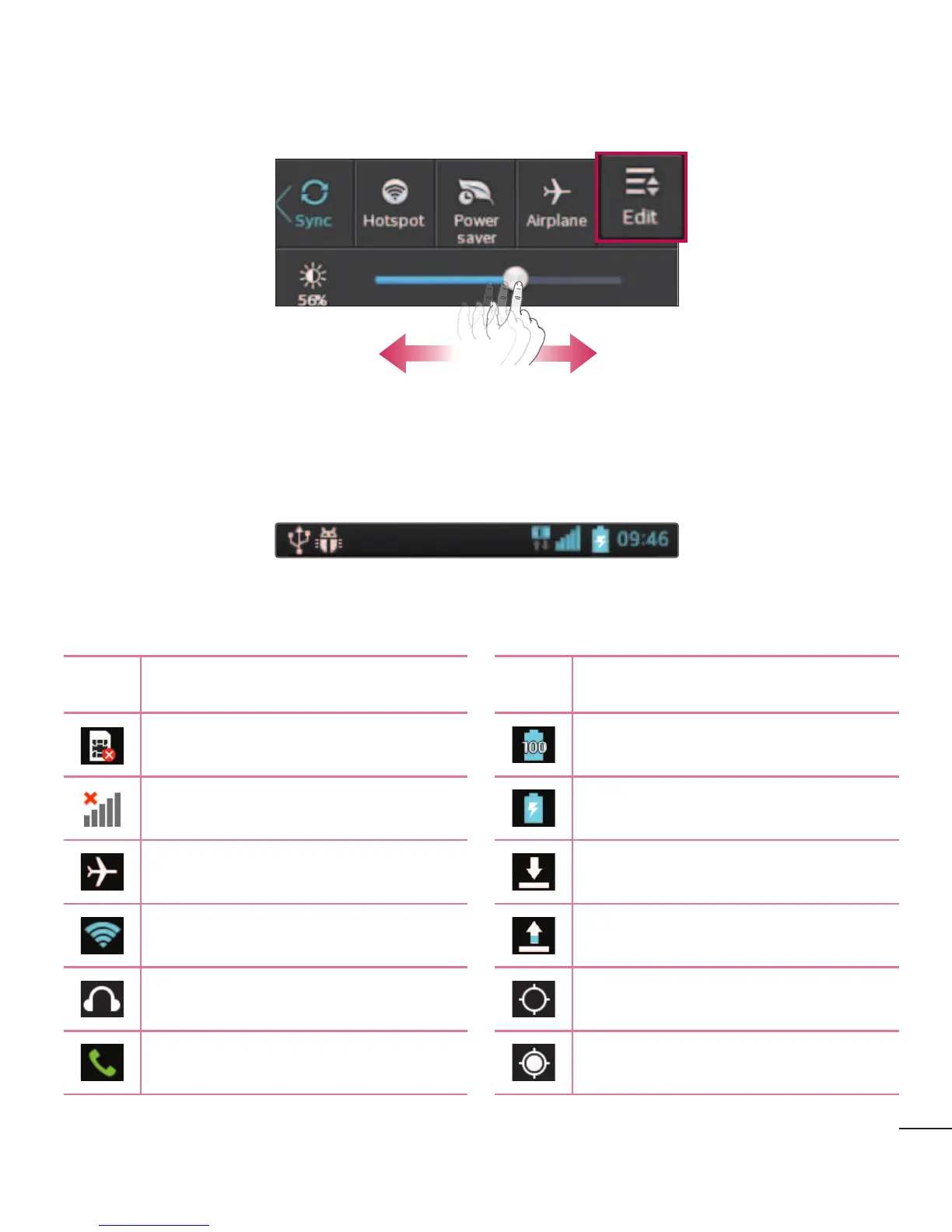 Indicator icons appear on the status bar at the top of the screen to report missed calls,