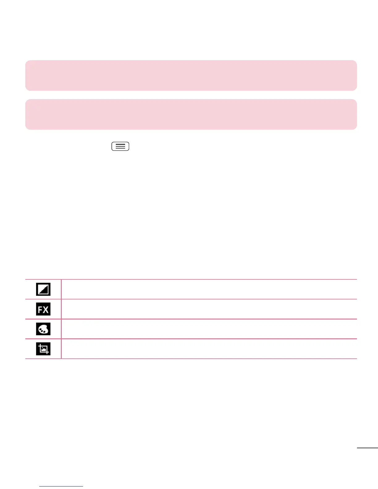 Crop – Crop your photo. Move your finger across the screen to select the area to be