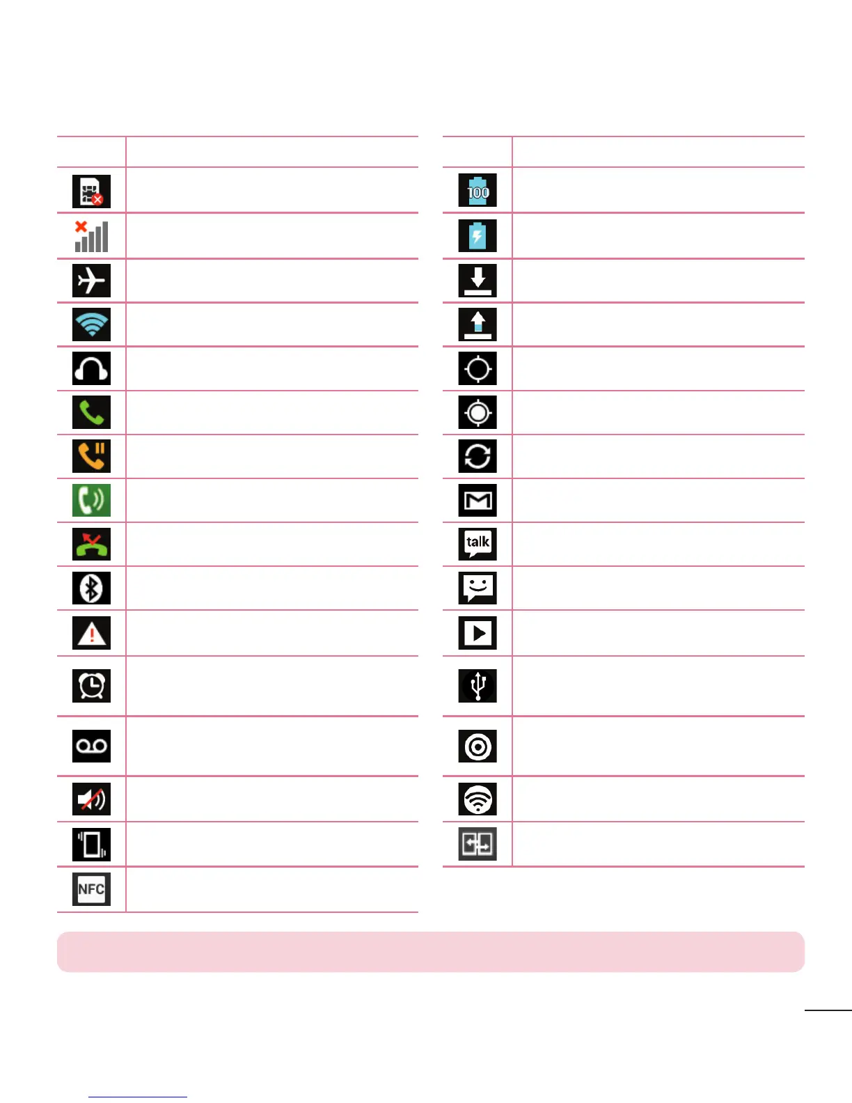 NOTE: The icons location in the status bar may differ according to the function or service.