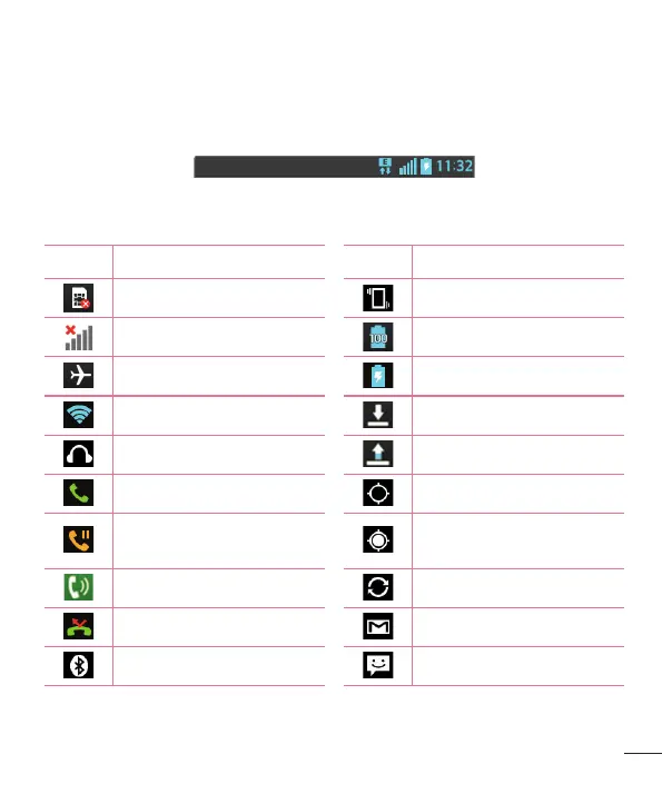 Indicator icons appear on the status bar at the top of the screen to report missed calls,