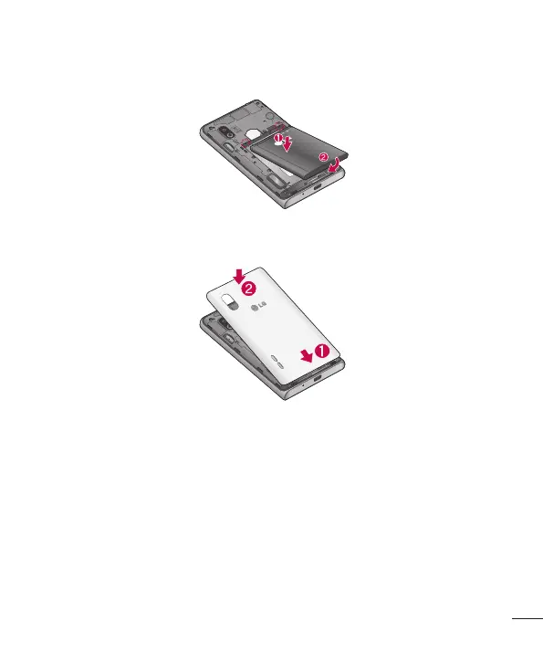 กับแบตเตอรี่ (1) และค่อยๆ กดลงจนกว่าจะแน่นเข้าที่ (2)
