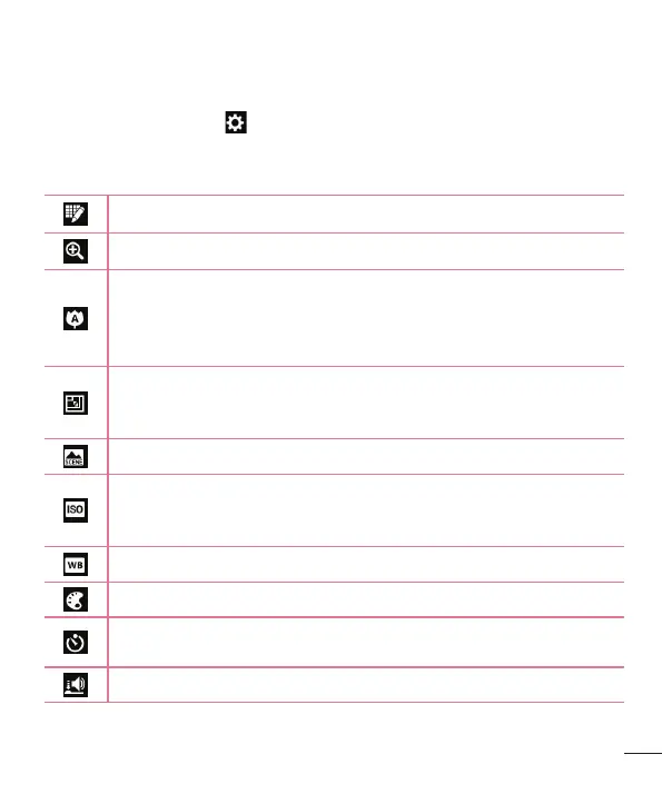 ตั้งค่ากล้องถ่ายรูปได้โดยเลื่อนรายการ หลังจากเลือกตัวเลือก ให้แตะปุ่ม
