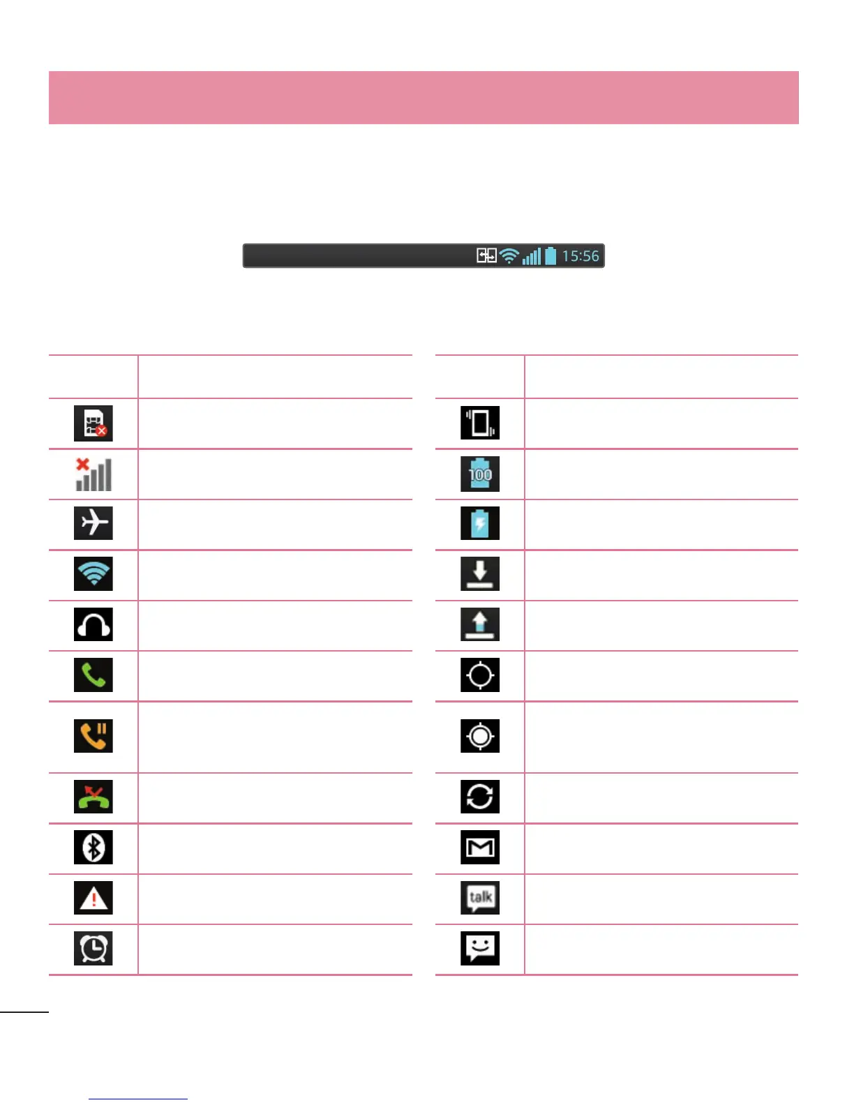 Indicator icons appear on the status bar at the top of the screen to report missed calls,