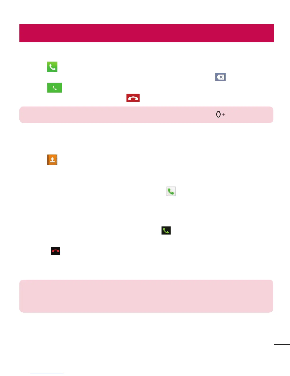 TIP! To enter "+" to make international calls, touch and hold .