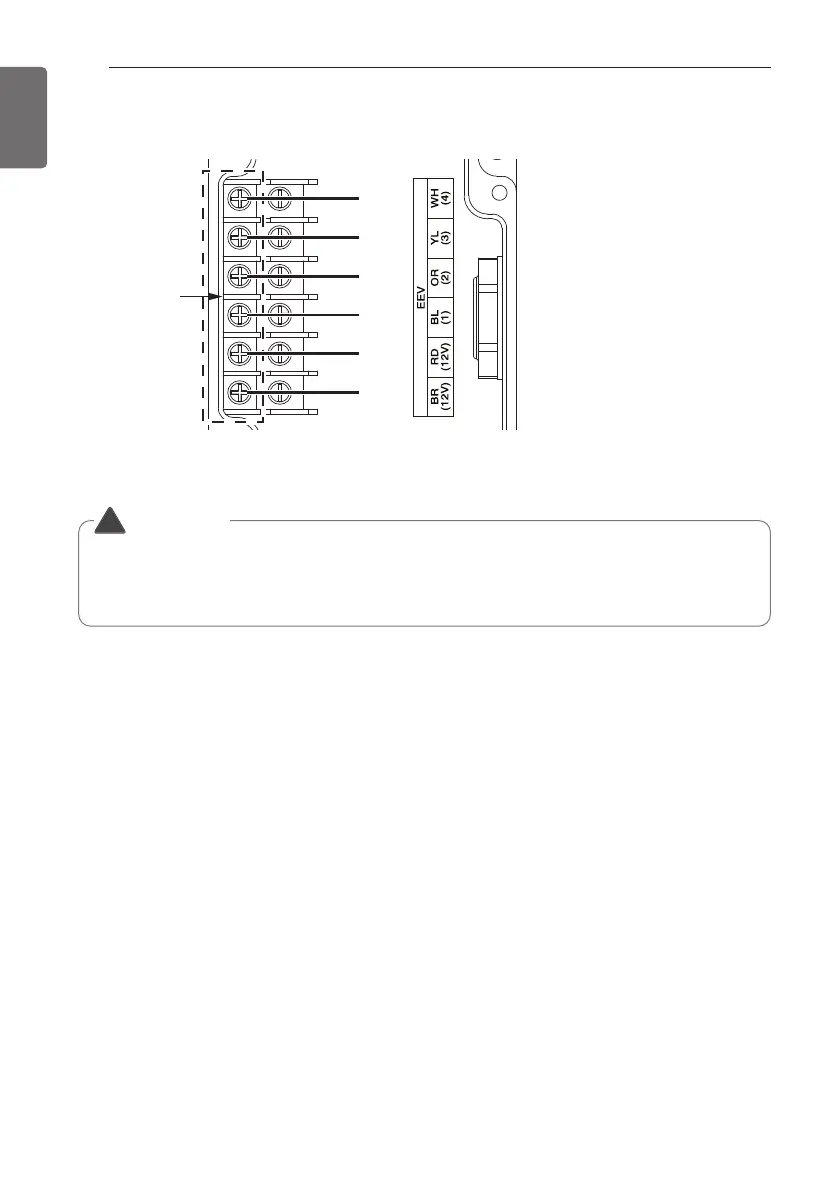 3 Use the screwdriver (+) to connect the EEV wires to the terminal block (E) according to the