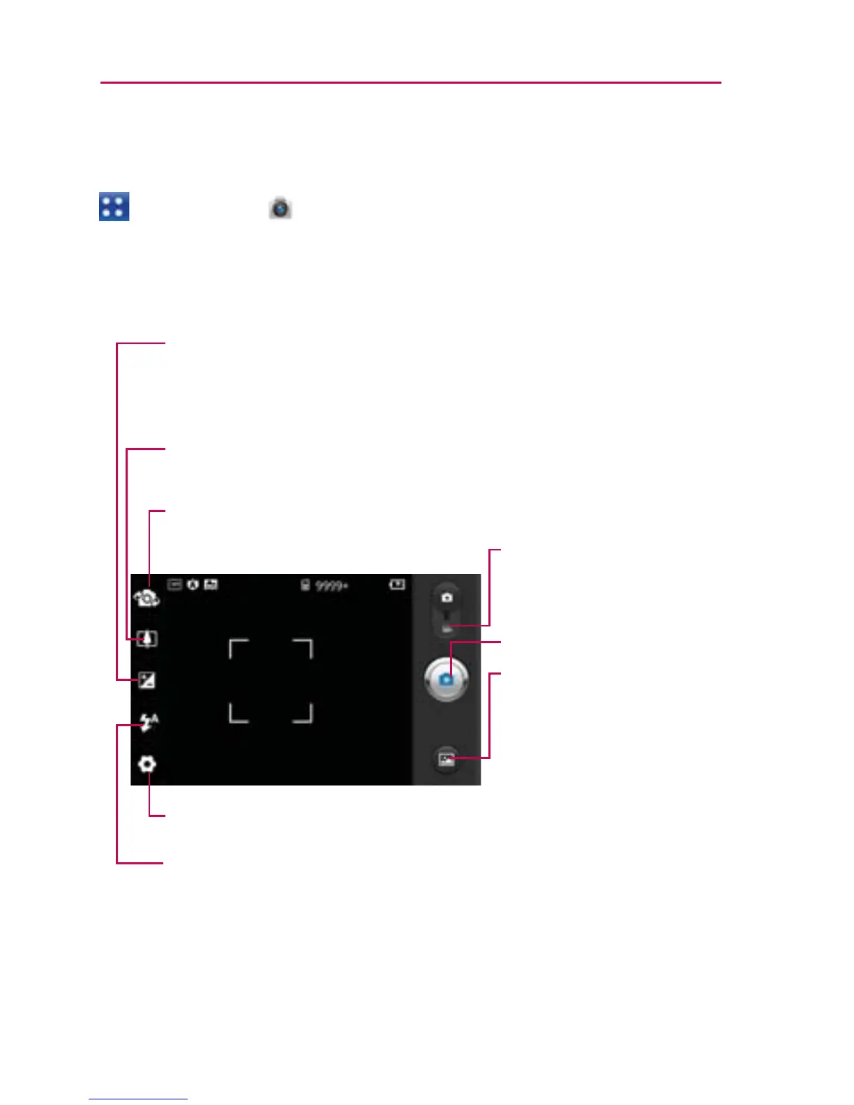 Para abrir la aplicación Cámara, toque la Tecla Menú