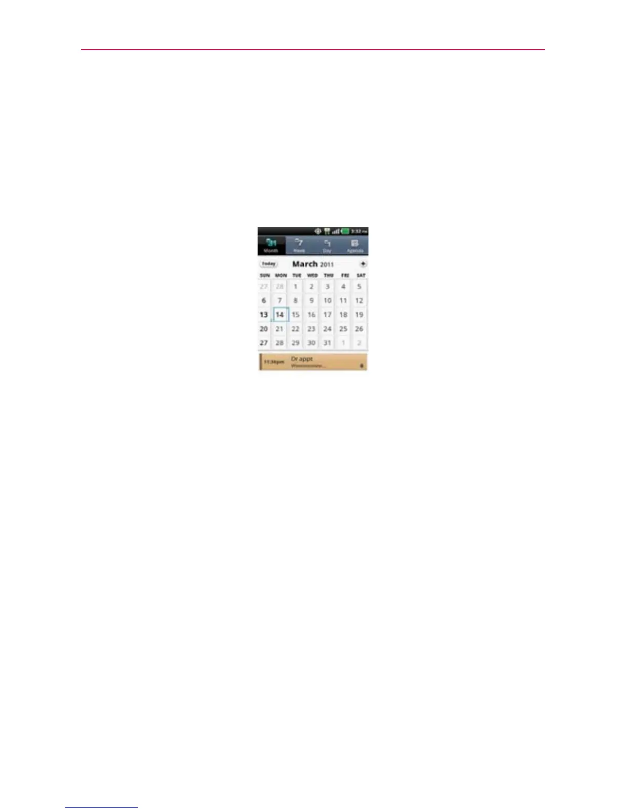 Touch a day to display the events below the calendar. You can then