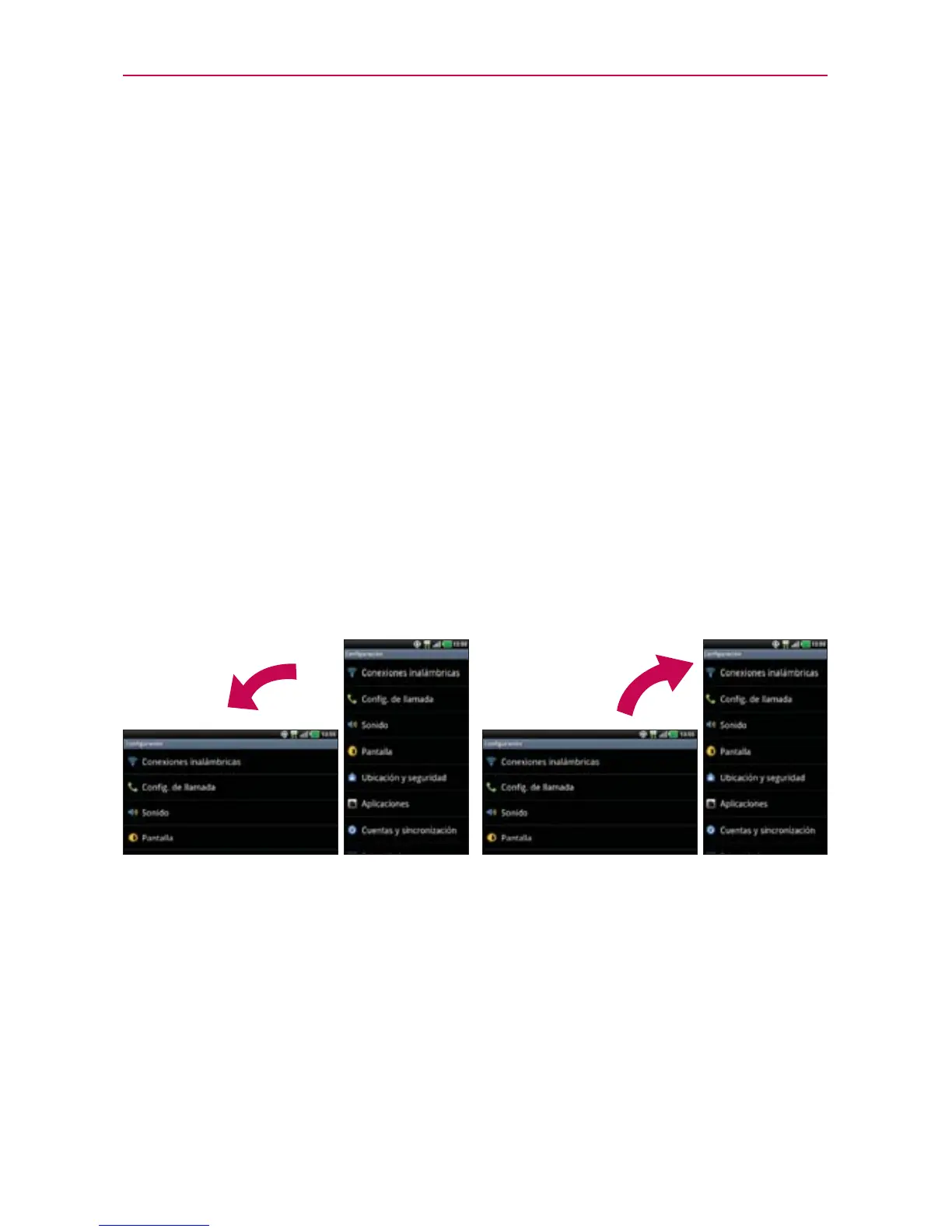pantallas principales al desplazarse de izquierda a derecha (y viceversa).