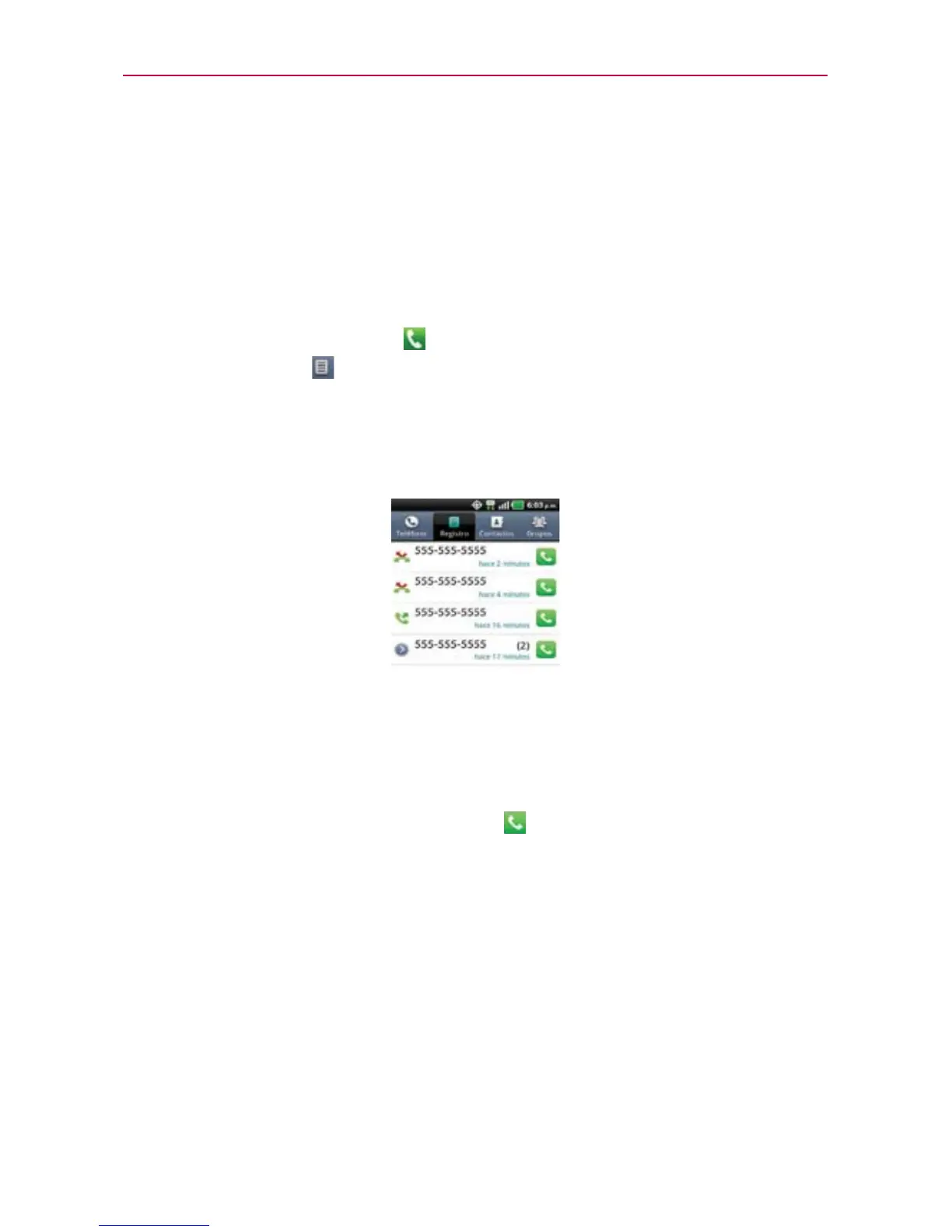 En Registro, toque la Tecla Llamar a la derecha de la entrada.