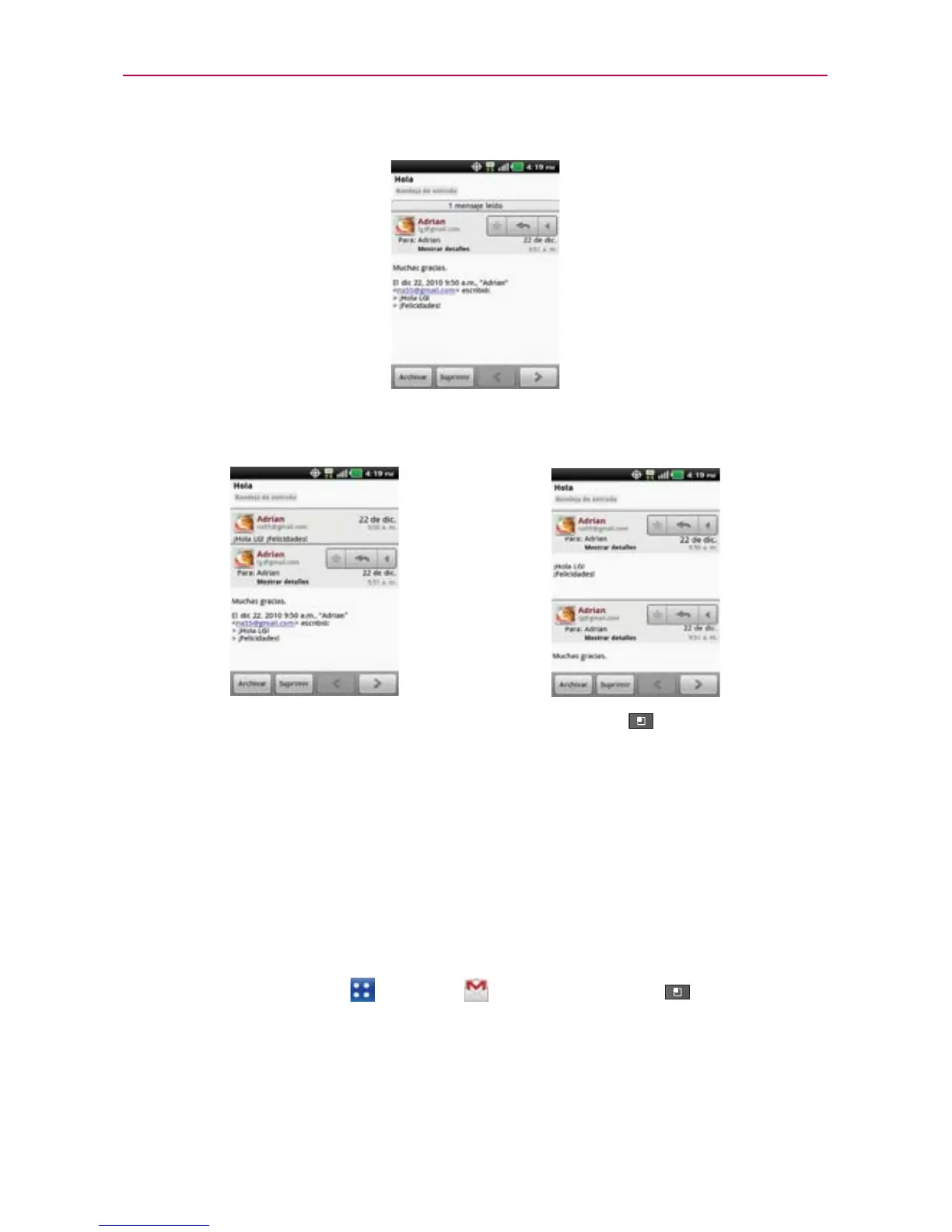Cuando lee un mensaje puede tocar Tecla de Menú