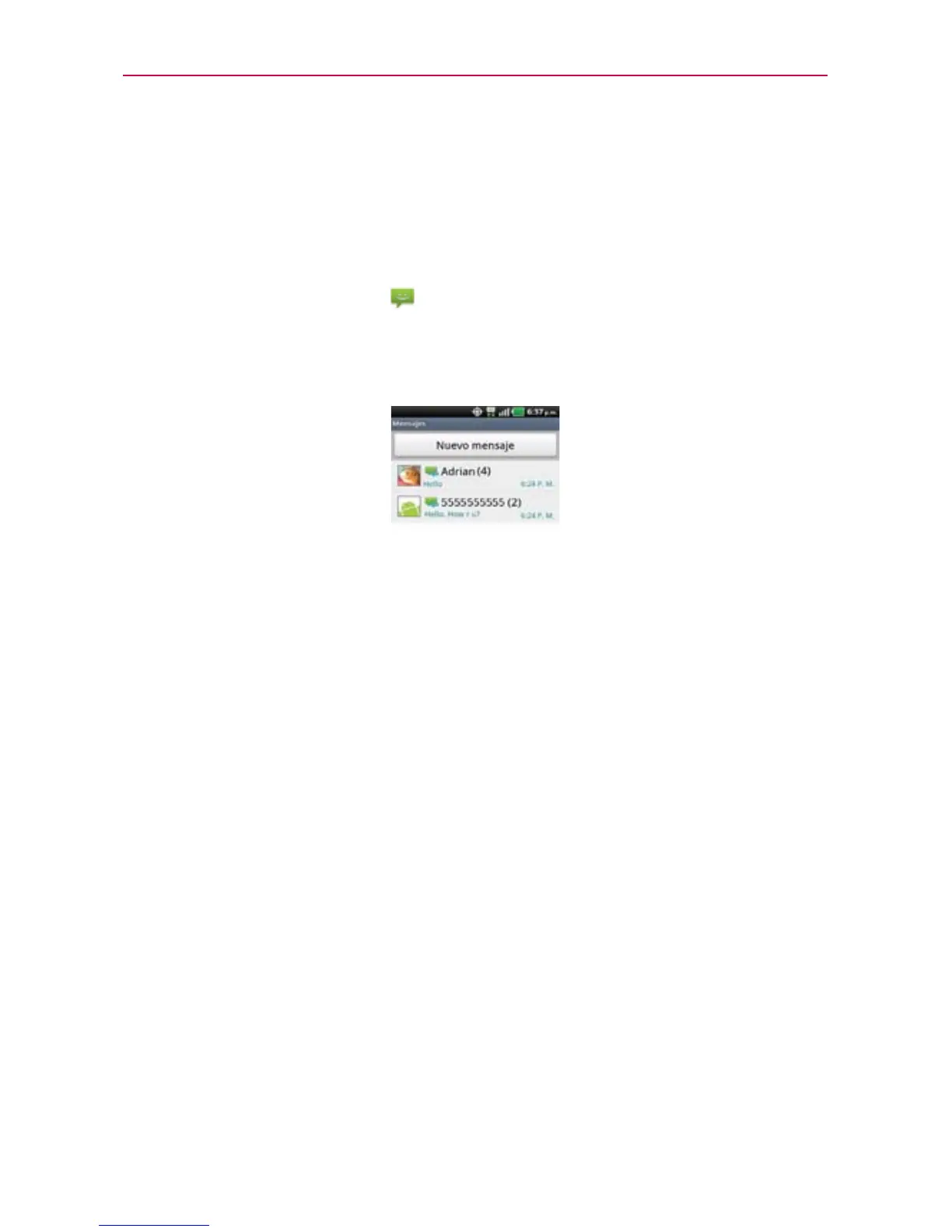 Toque Nuevo mensaje para iniciar un nuevo mensaje de texto o