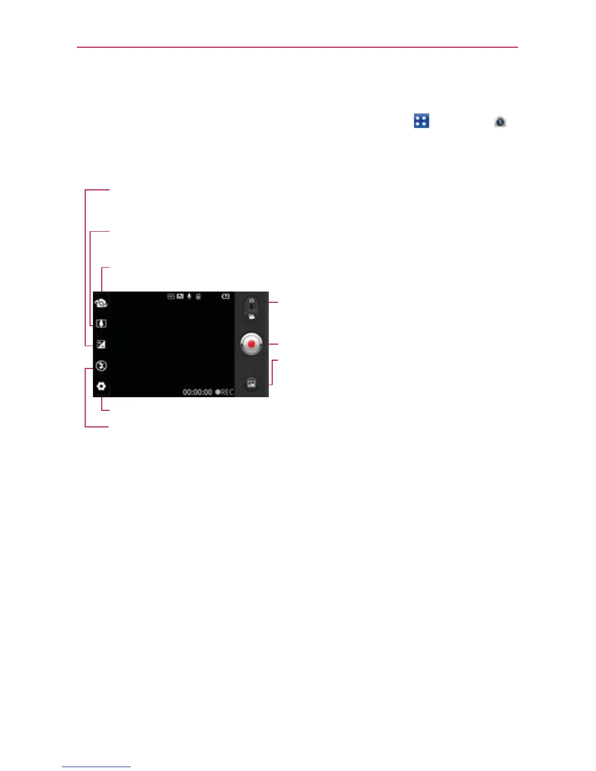 Para abrir la aplicación Cámara de video, toque la Tecla Menú > Cámara .
