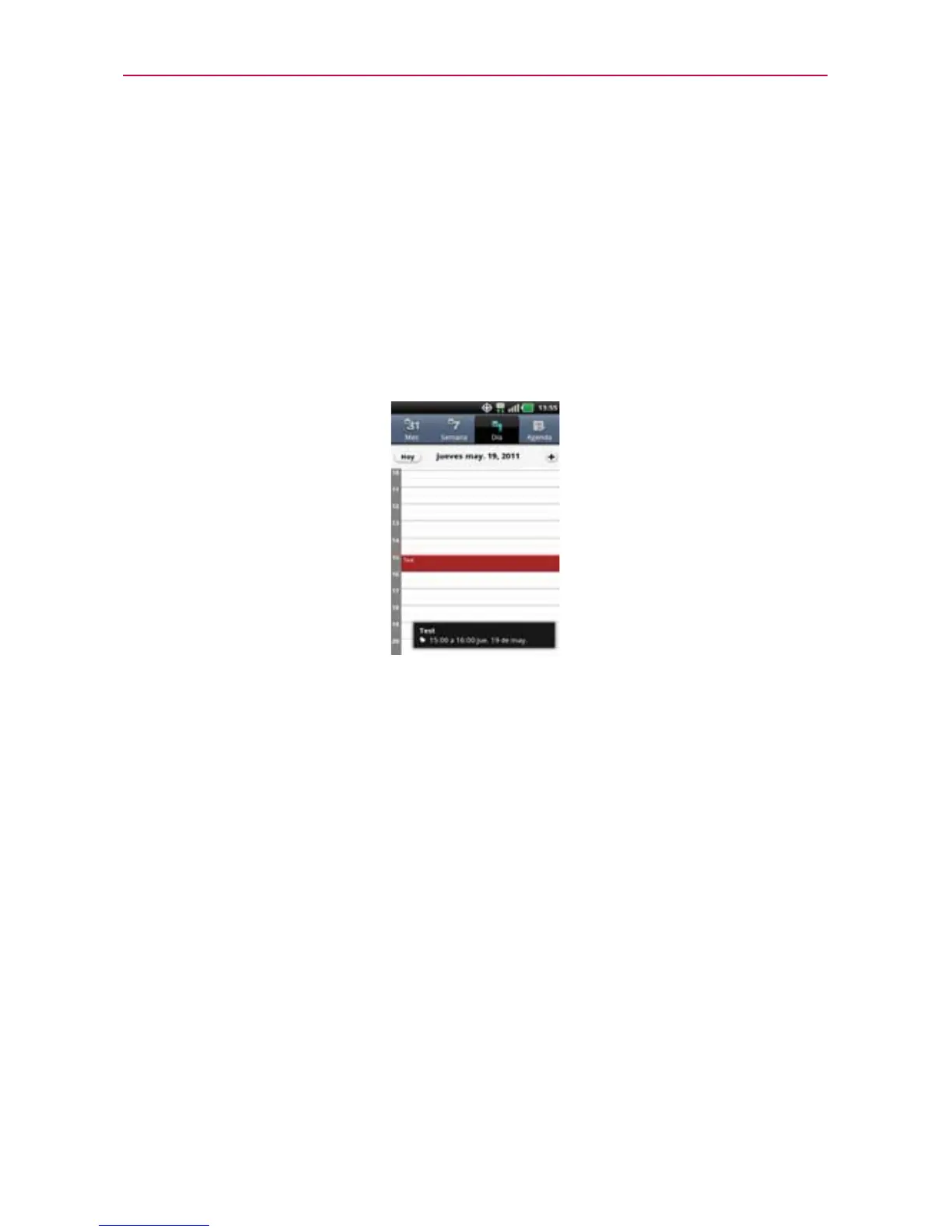 hora. La hora actual estará destacada. Los eventos de todo el día y de varios