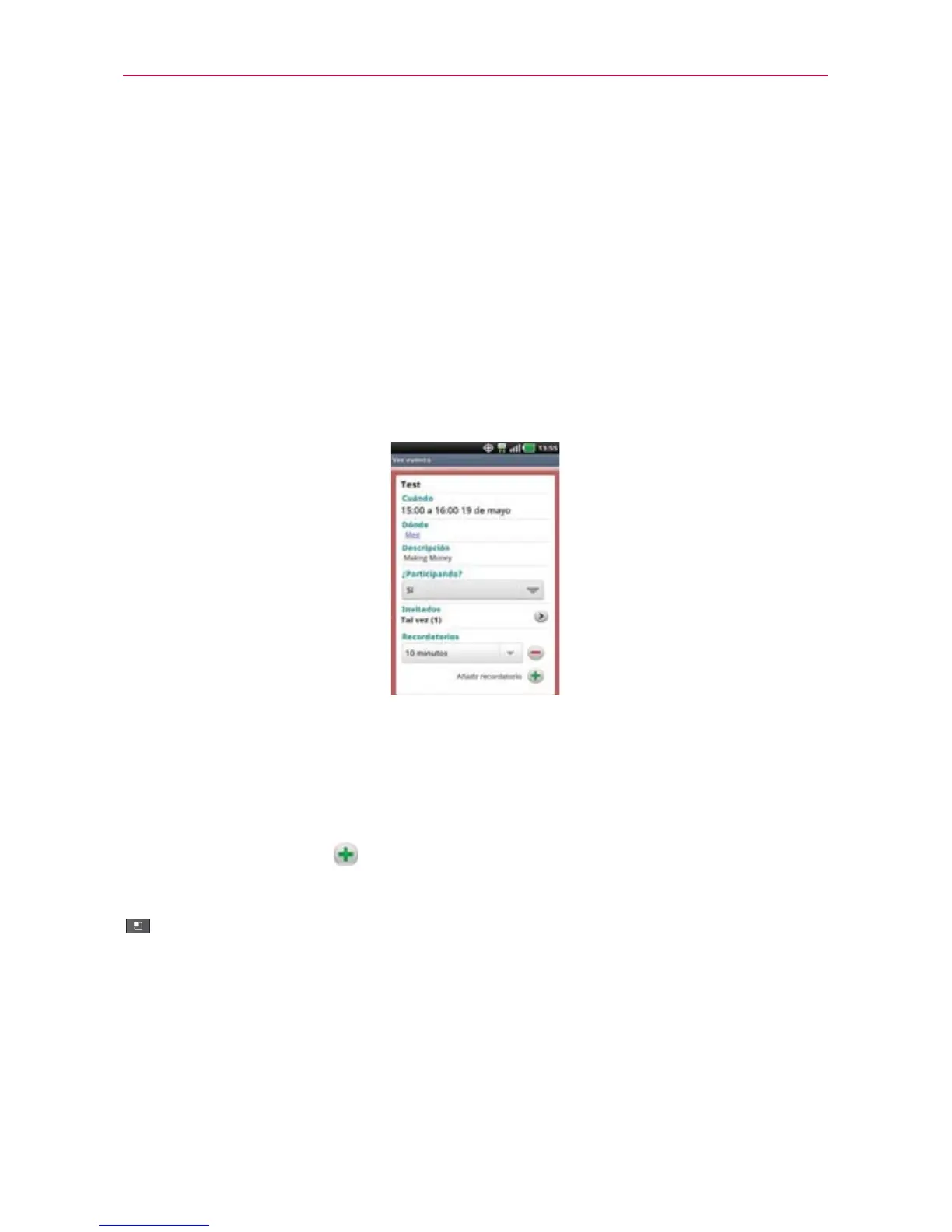 Si tiene permiso para cambiar los eventos, puede tocar la Tecla de Menú
