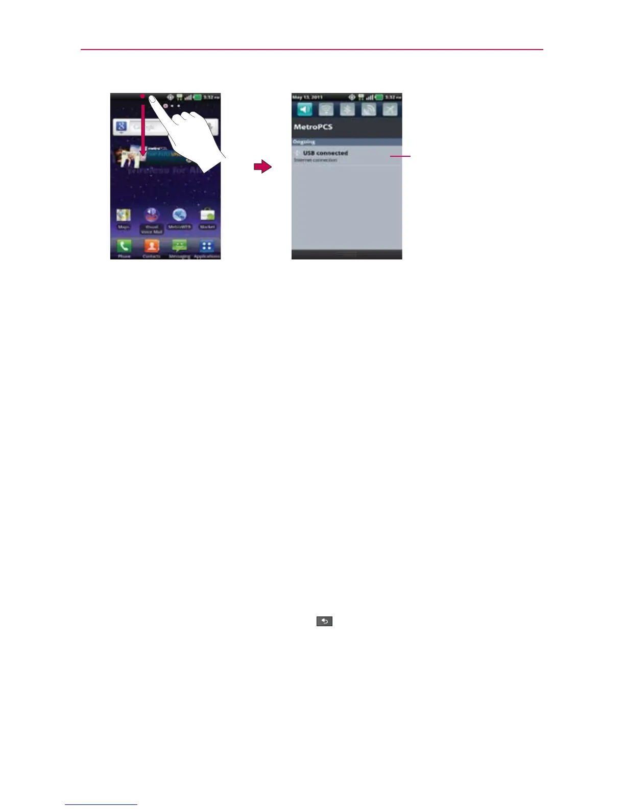 Touch and drag the tab at the bottom of the Notifications panel to the top of