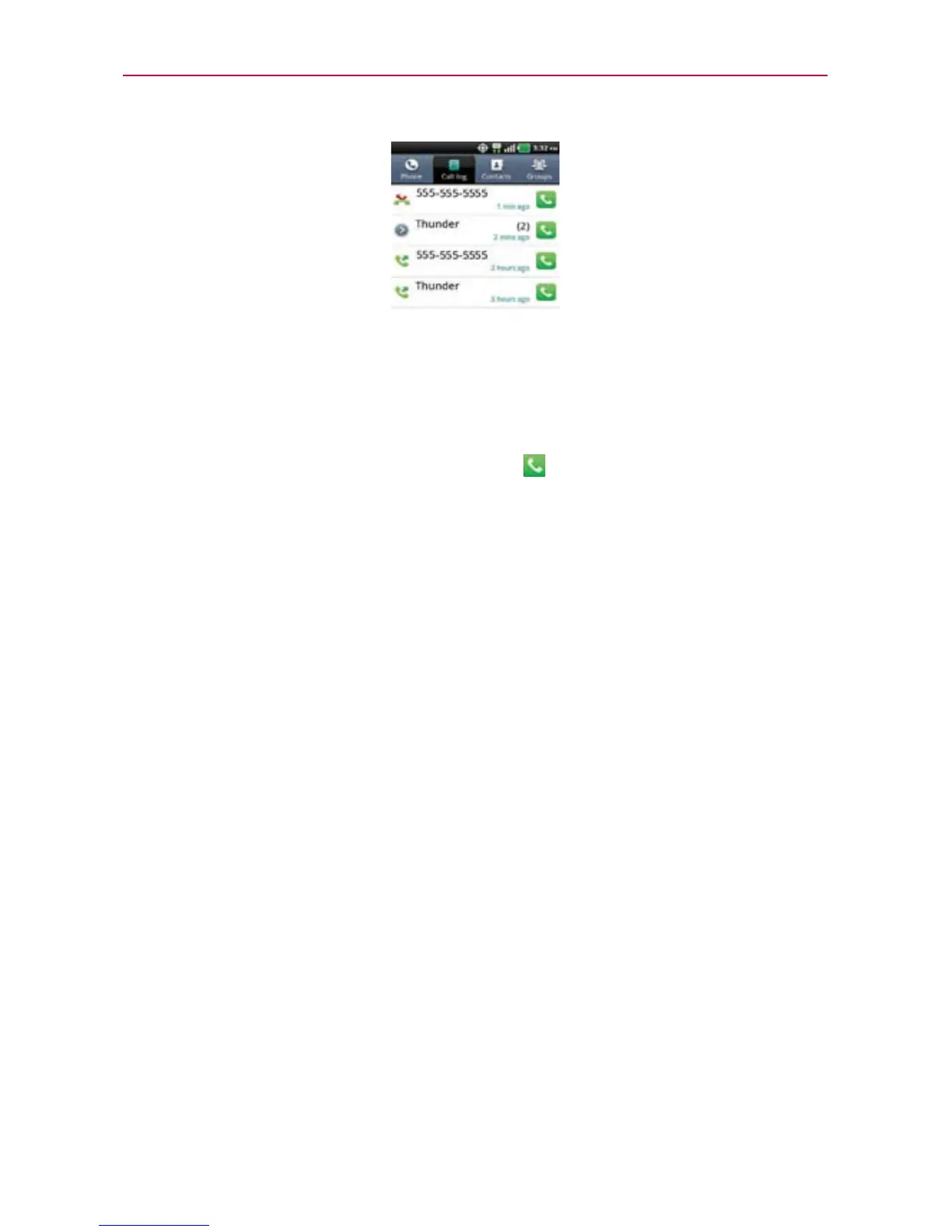 Touch a Call log entry to open a screen from where you can call
