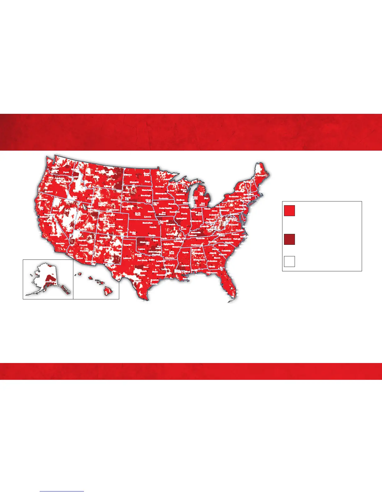 Las áreas de cobertura pueden incluir redes operadas por otros proveedores de servicio; parte de la cobertura mostrada se basa
