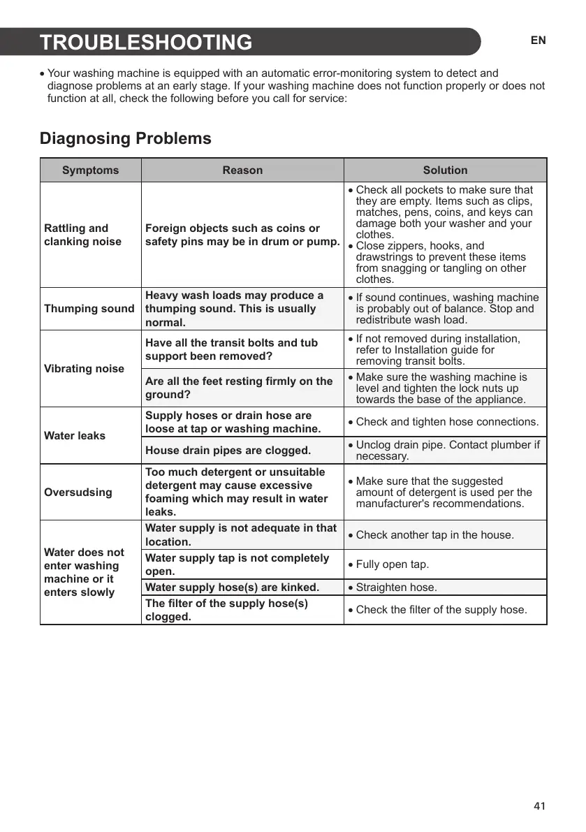 • Your washing machine is equipped with an automatic error-monitoring system to detect and