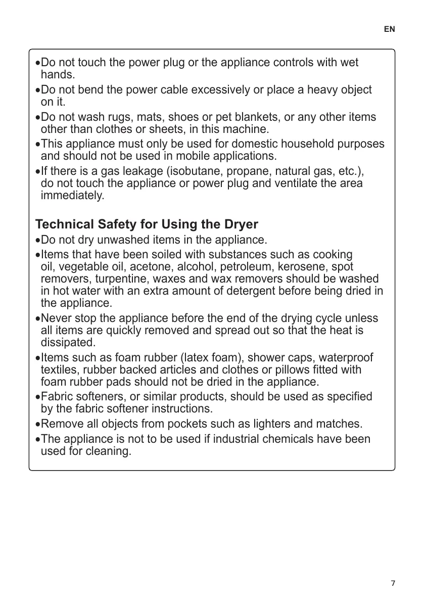 •Never stop the appliance before the end of the drying cycle unless