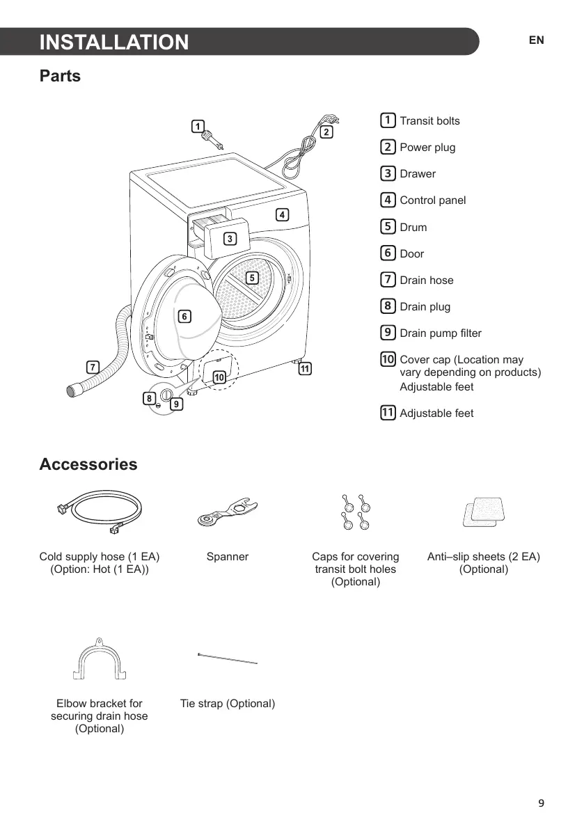 LG F0805CW - Installation; Parts; Accessories