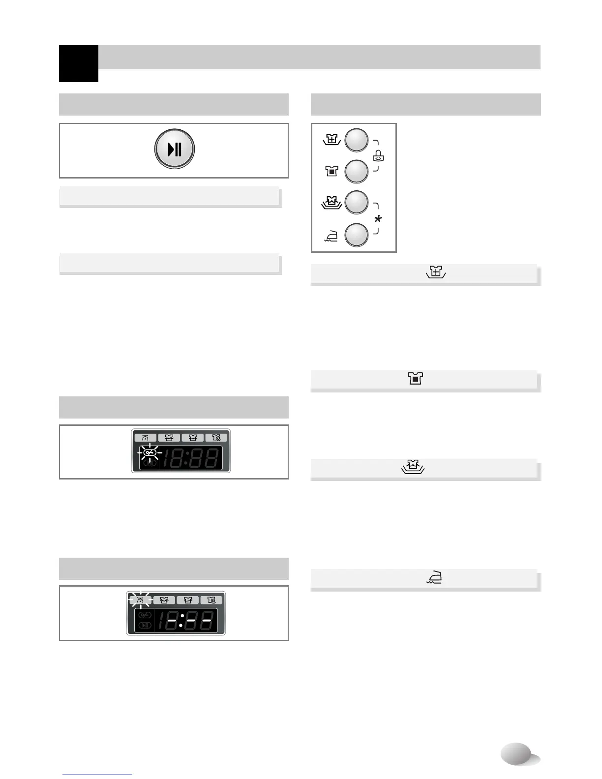 • This Start/Pause button is used to start wash