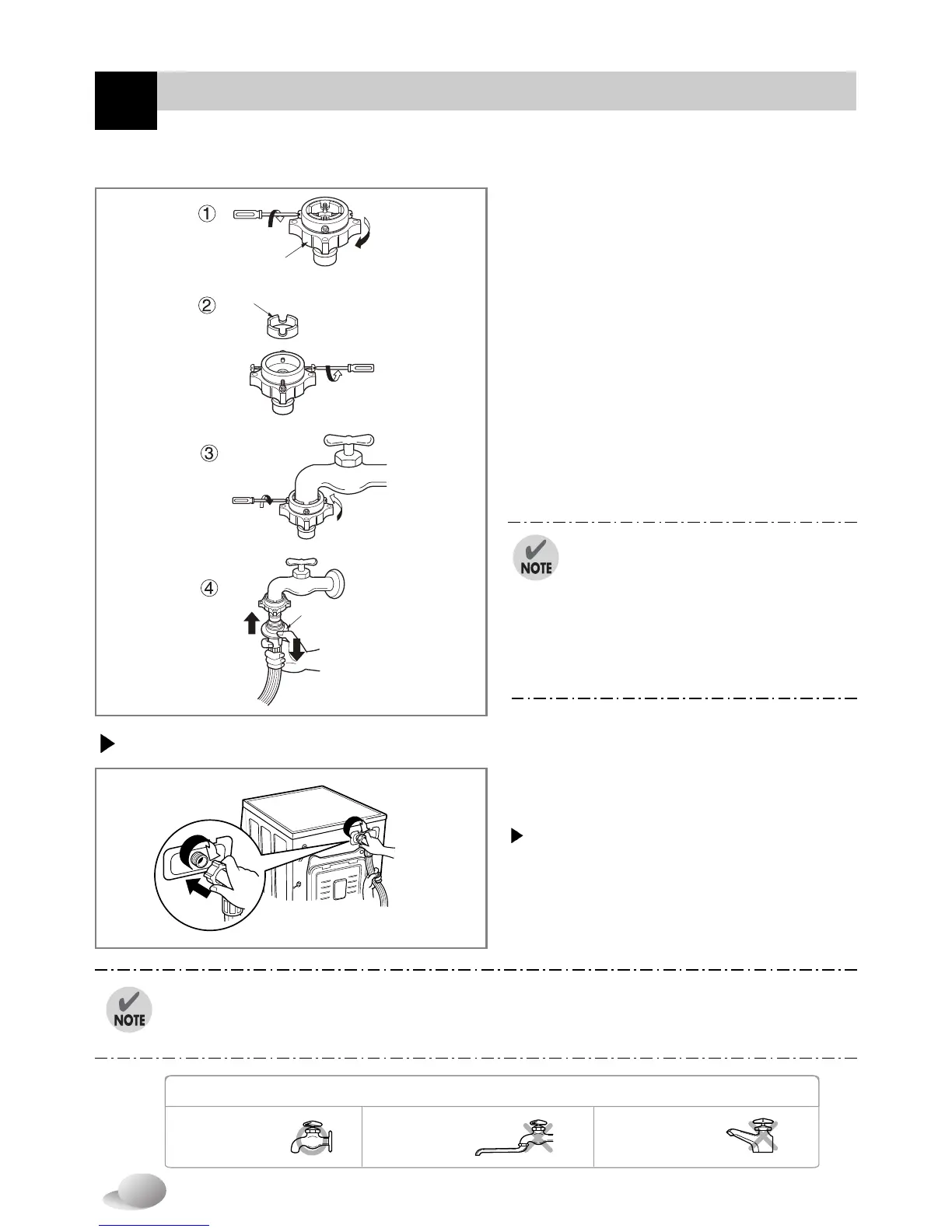 After completing connection, if water leaks from the hose, repeat the same steps.