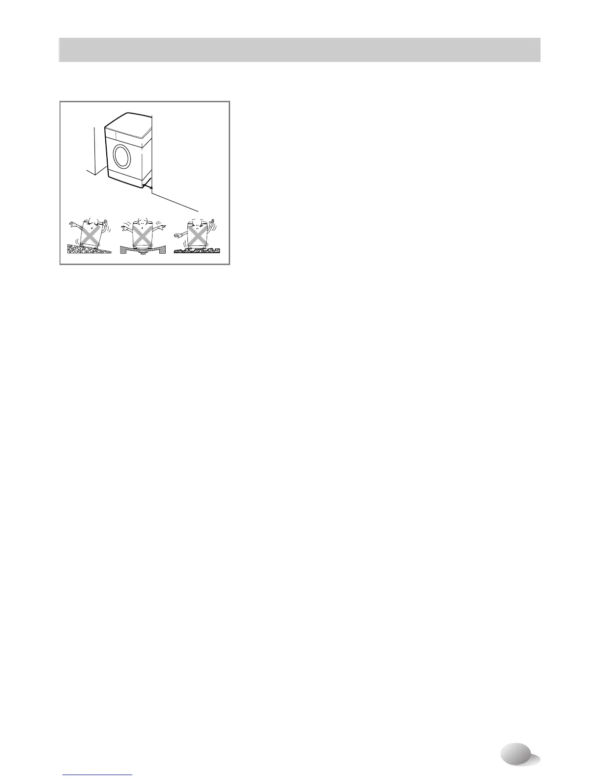 • Make sure that air circulation around the washer is not impeded by carpets, rugs, etc.