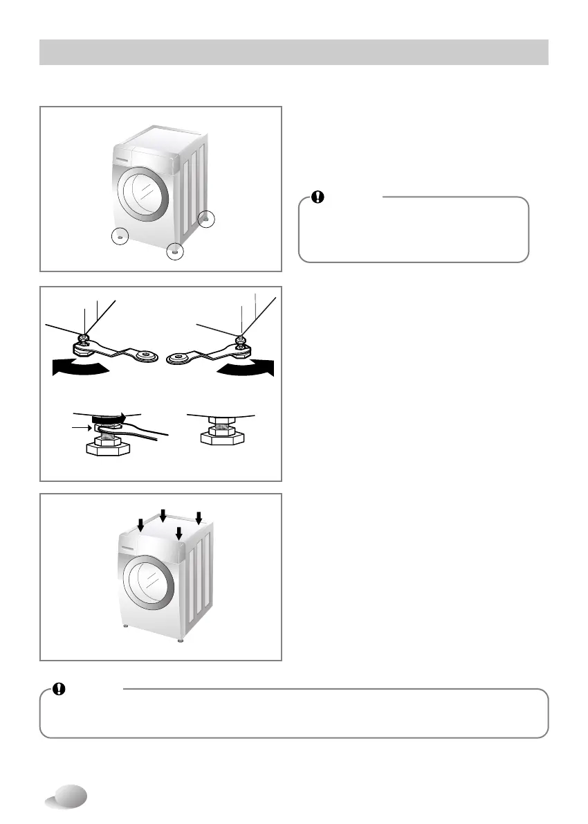 If the washing machine is installed on a raised platform, it must be securely fastened in