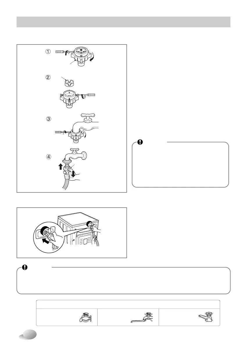 • After completing connection, if water leaks from the hose, repeat the same steps.