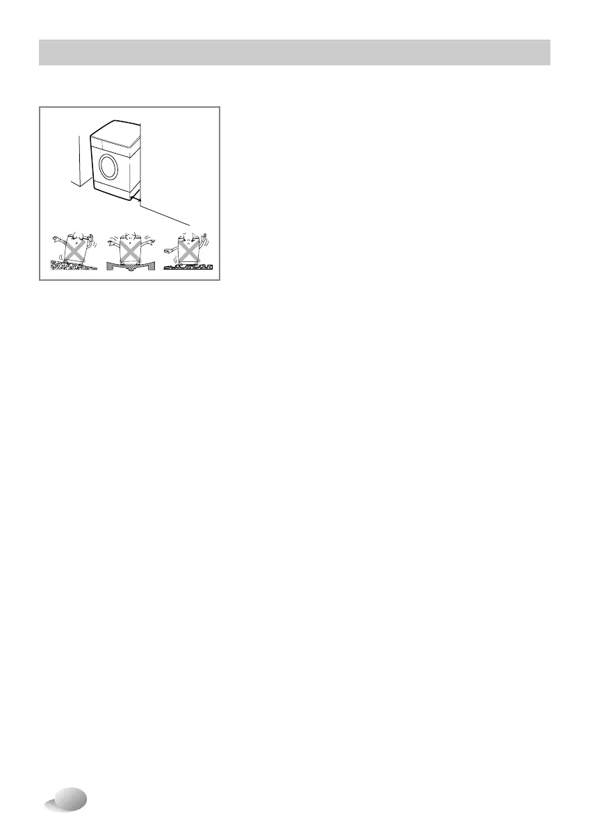 • Make sure that air circulation around the washer is not impeded by carpets, rugs, etc.