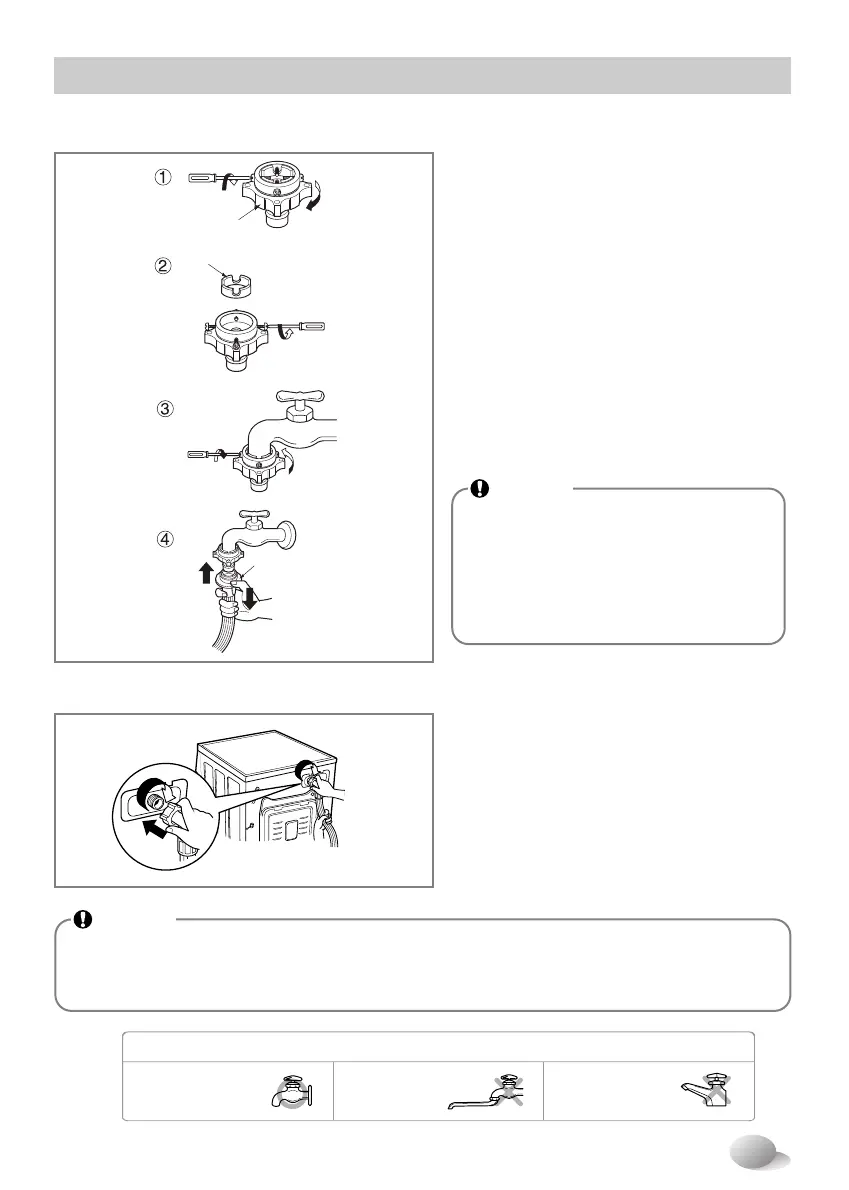 • After completing connection, if water leaks from the hose, repeat the same steps.