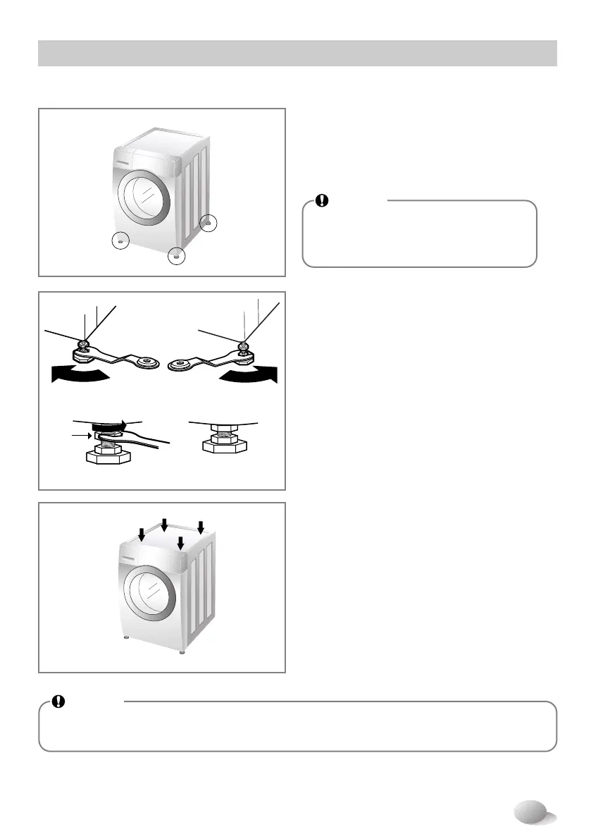 • If the washing machine is installed on a raised platform, it must be securely fastened in