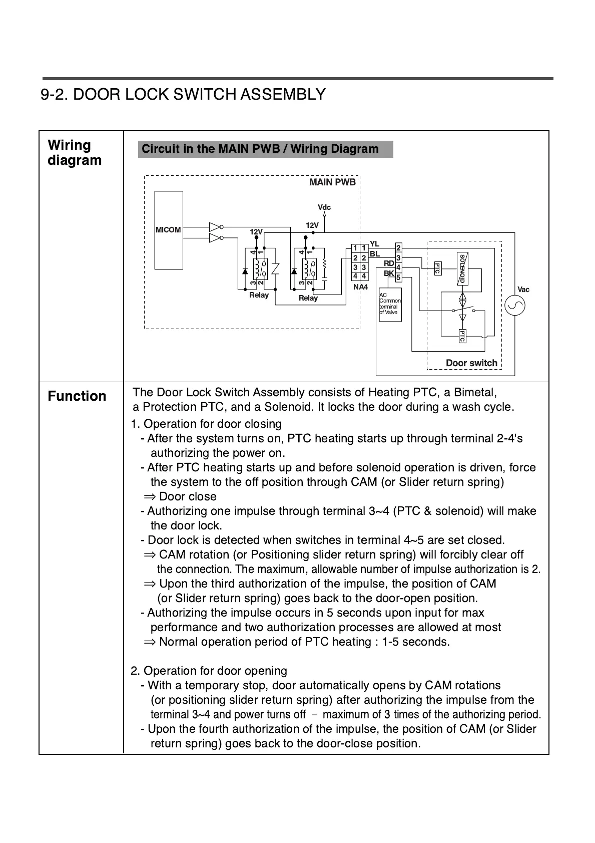 a Protection PTC, and a Solenoid. It locks the door during a wash cycle.