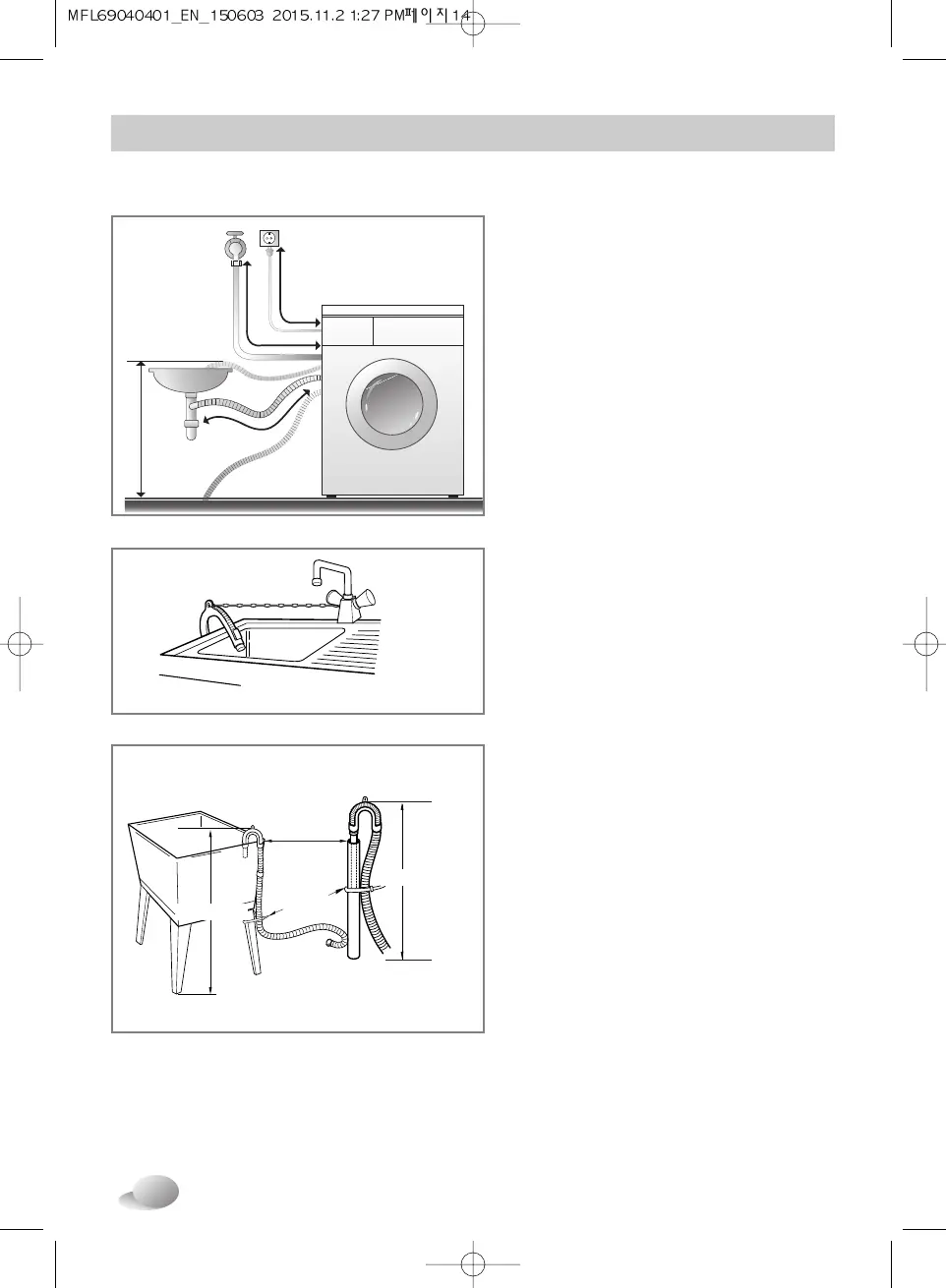 • When installing the drain hose to a sink,