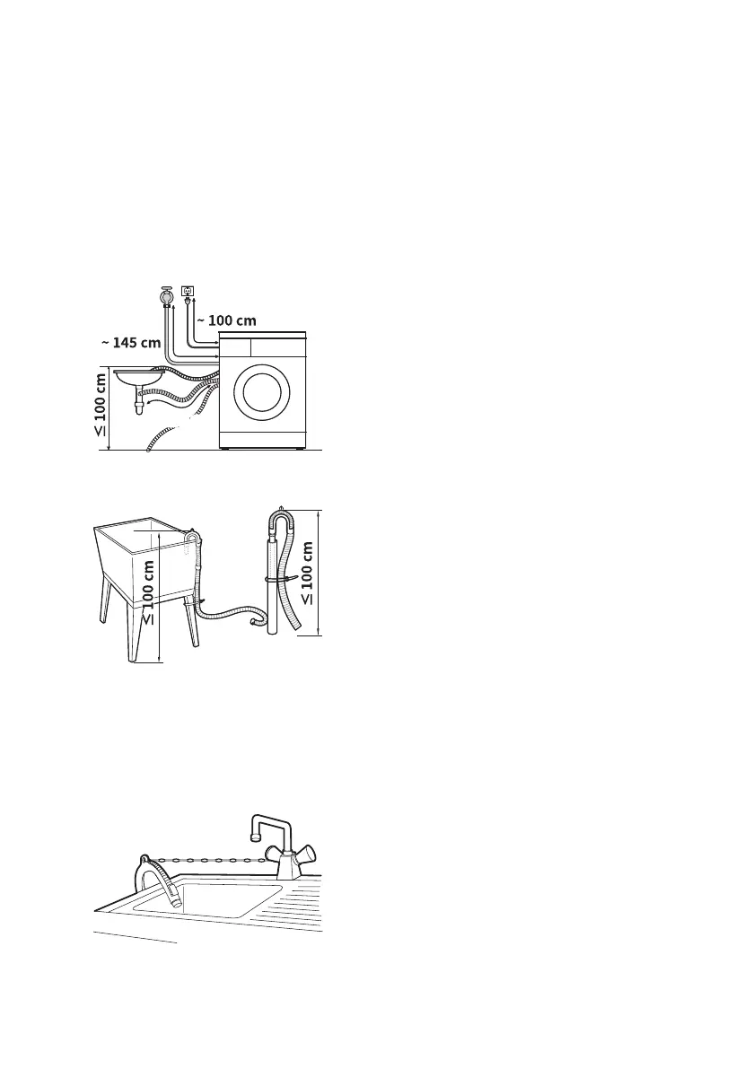 The drain hose should not be placed higher than