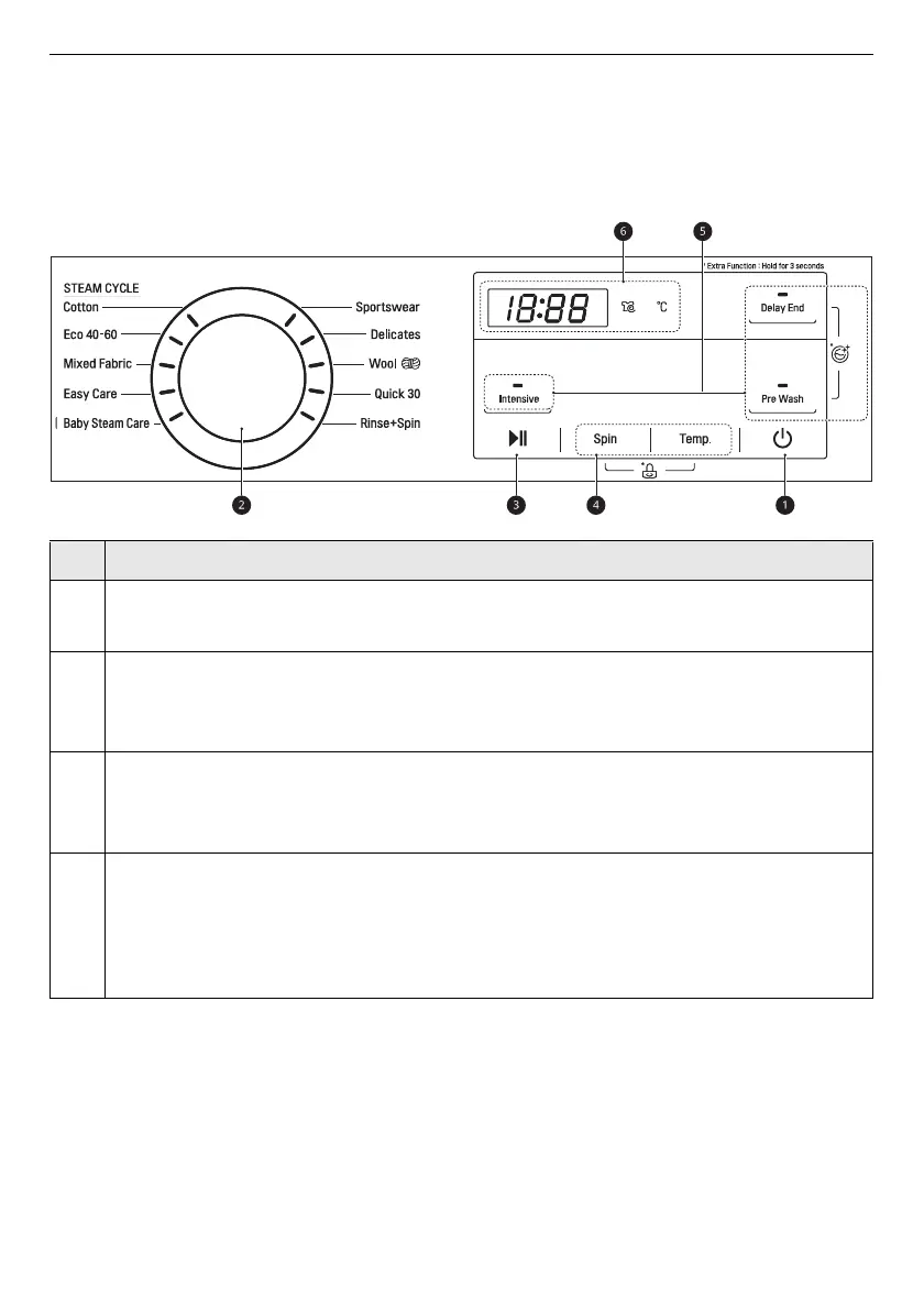 • Press this button to turn the washing machine on.