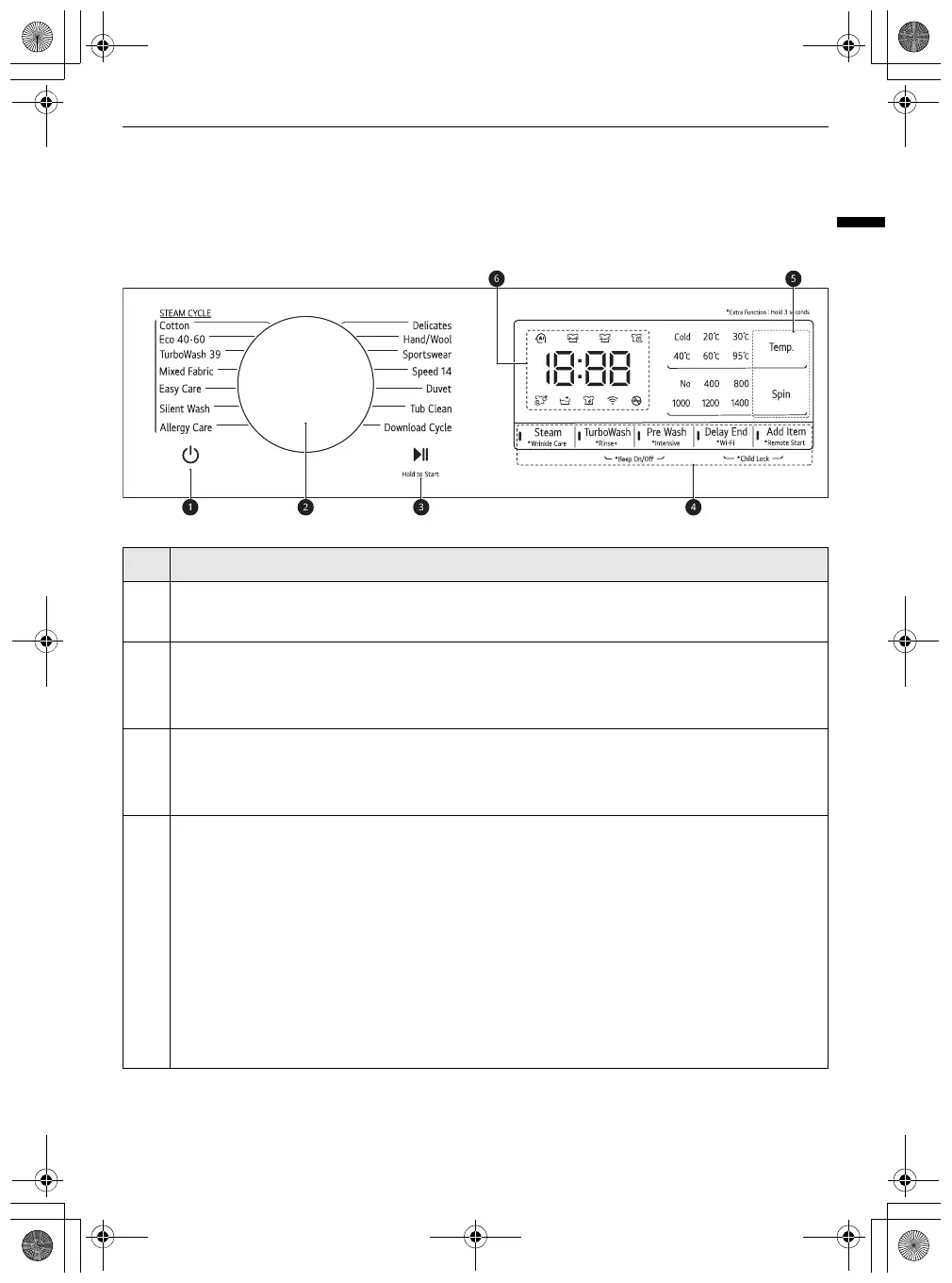 • Press this button to turn the washing machine on.