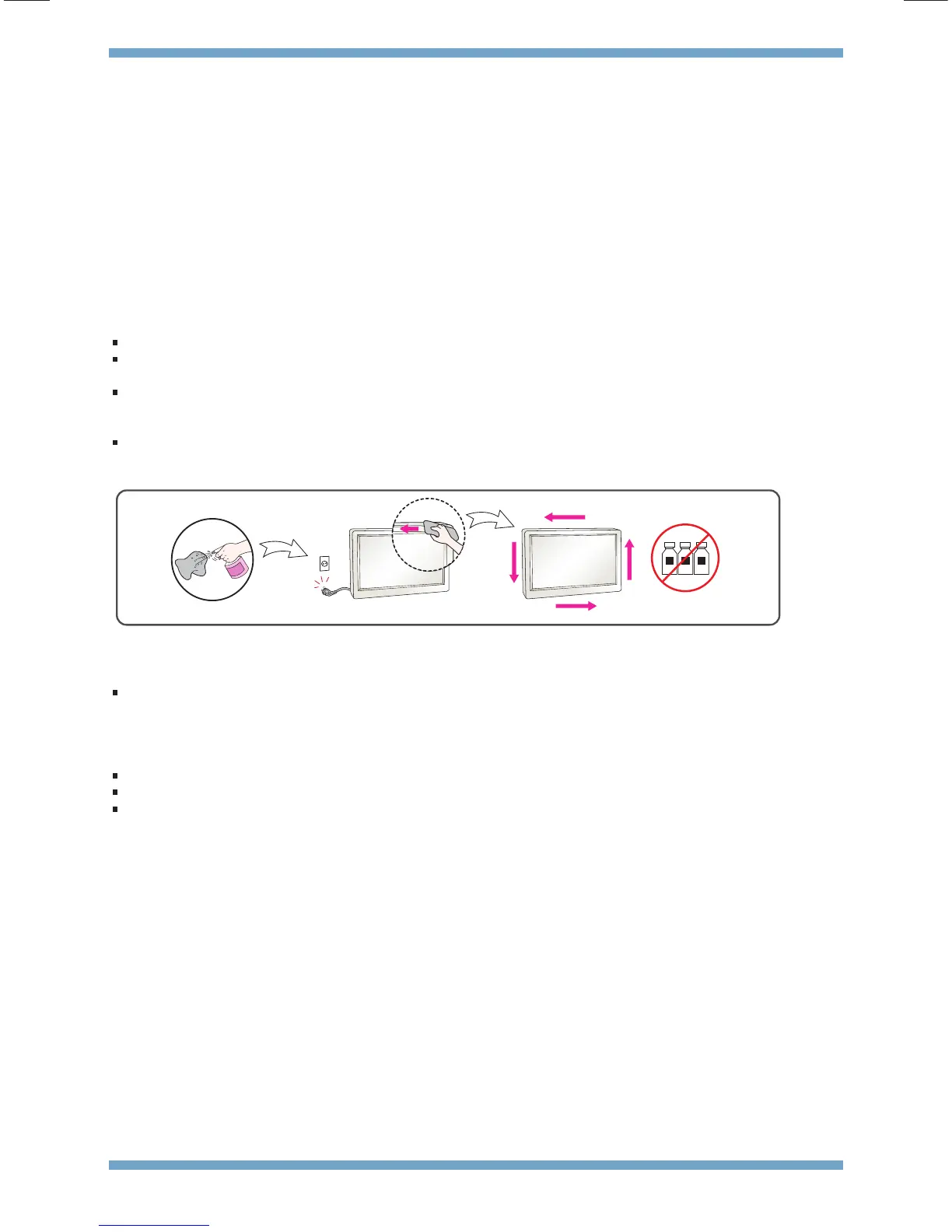 with a wet cloth or spray water or other liquids directly onto the product. An electric shock may occur. (Do not use chemi-